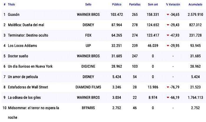 Guasón y Maléfica: Dueña del mal se mantuvieron en lo más alto de la